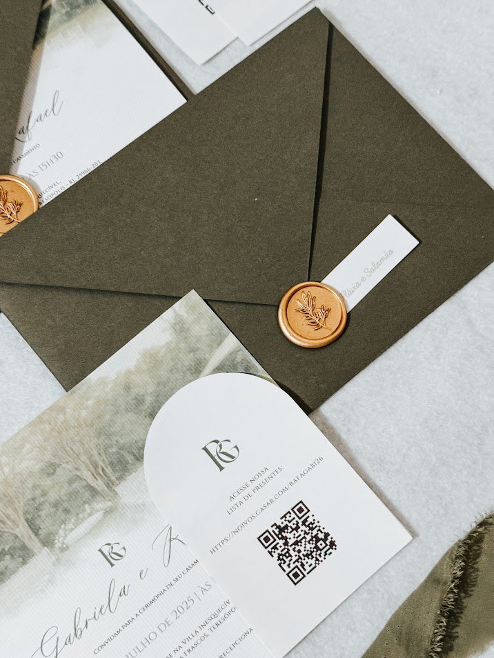 ENVELOPE PONTA BICO HORIZONTAL + CONVITE INTERNO + LACRE DE CERA + TAG INTERNA ARREDONDADA